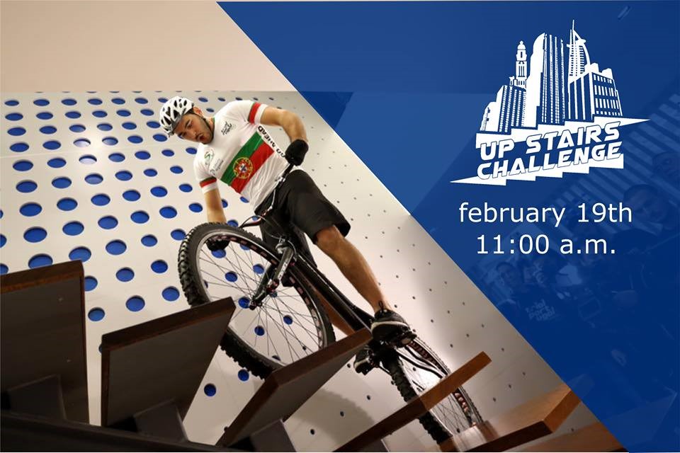 O “Up Stairs Challenge” consiste na subida de grandes edifícios em bicicleta, numa lógica de “degrau a degrau”. Neste desafio, o atleta Daniel Sousa, da equipa Trial Portugal, irá escalar os 150 degraus do edifício Louise Weiss, em Bruxelas, sem nunca colocar os pés no chão ou desmontar a bicicleta durante a prova.