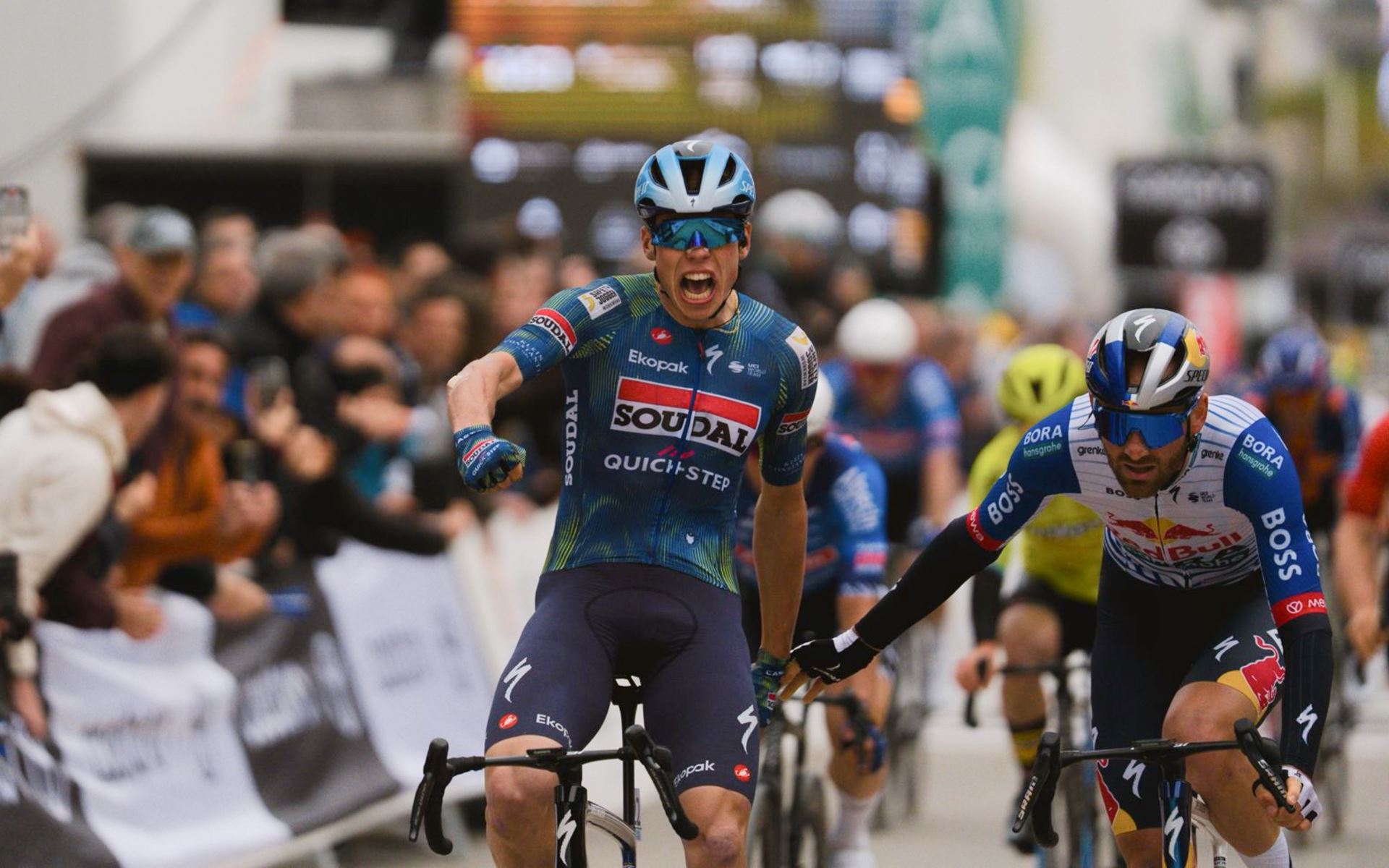 A partir daí, foi uma luta por posição até à meta, com os diferentes comboios a tentarem posicionar da melhor maneira os homens rápidos. A Alpecin-Premier Tech aparecia como a grande candidata a triunfar, com Jasper Philipsen, mas foi Paul Magnier, francês da Soudal Quick-Step a roubar as atenções.
