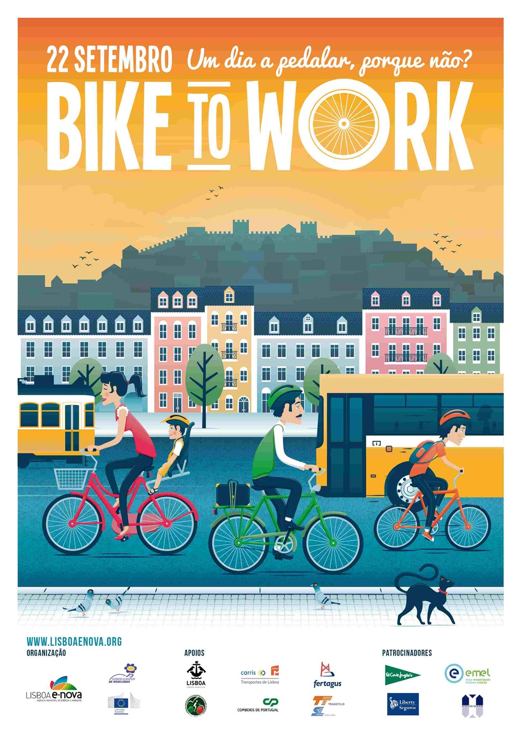 A Lisboa E-Nova – Agência Municipal de Energia-Ambiente com o apoio da Câmara Municipal de Lisboa e da Federação Portuguesa de Cicloturismo e Utilizadores de Bicicleta organiza no dia 22 de Setembro (Segunda-feira), no Dia Europeu sem Carros, a 4ª edição da iniciativa “De bicicleta para o Trabalho – Bike To Work”.